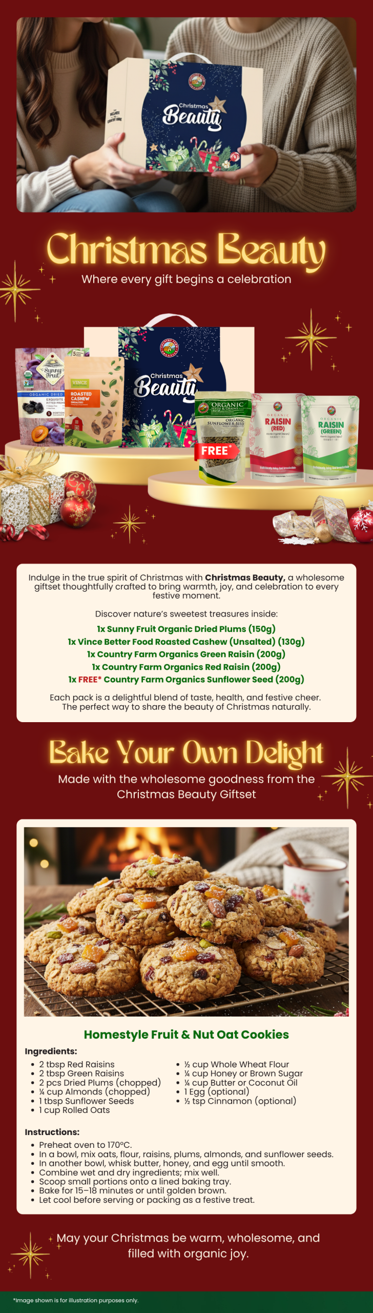 Our Country Farm Organics Christmas Beauty Dried Fruit Set will be available on shelves starting from 10 November 2025 until sold out. Don’t miss out on this opportunity to treat yourself or someone you care about to a truly exceptional holiday experience.🎄