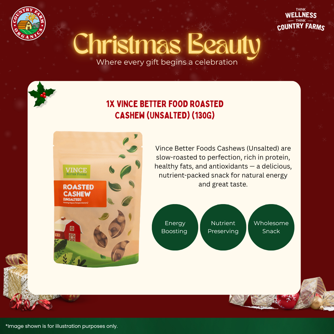 • Vince Better Food Roasted Cashew (Unsalted) (130g): These creamy and buttery nuts offer a delicious and satisfying snack that nourishes your body.