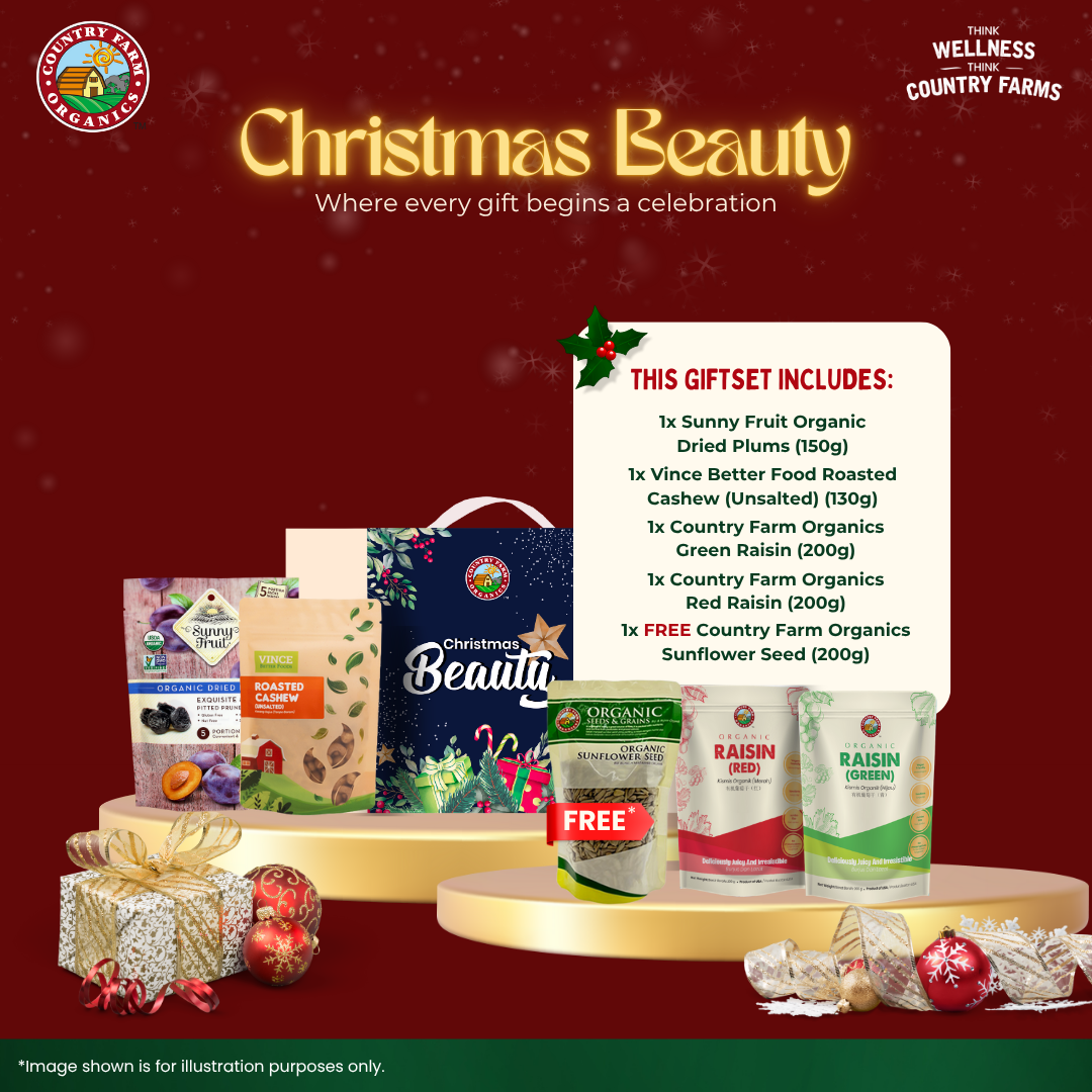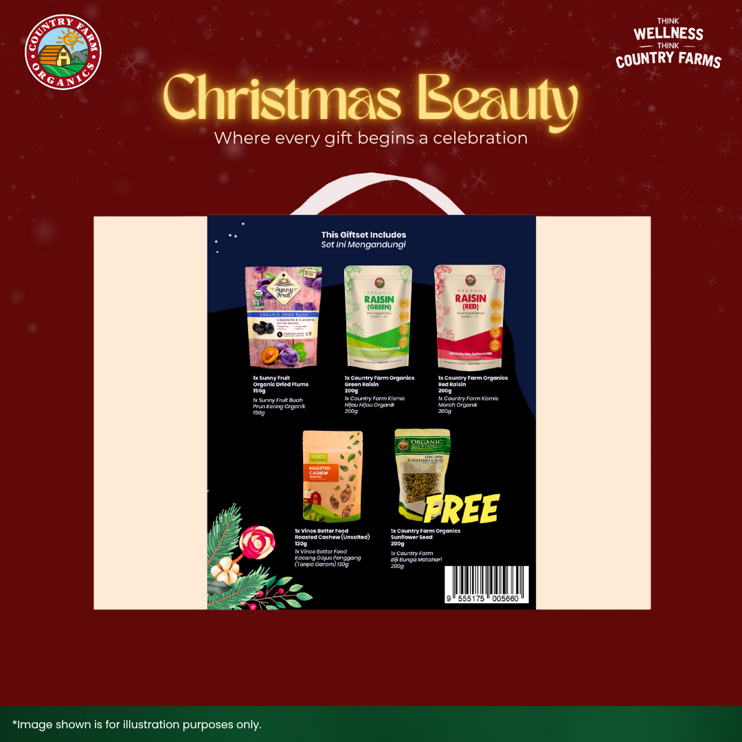 Spread the Joy of Organic Goodness – Give the gift of health and happiness this Christmas with the Country Farm Organics Christmas Beauty Dried Fruit Set.