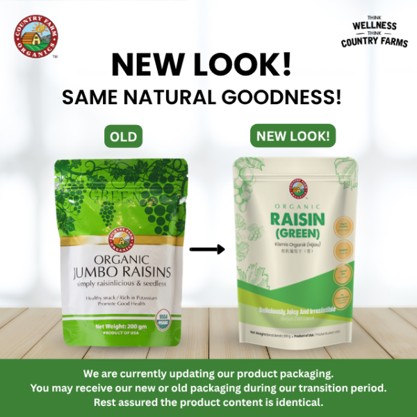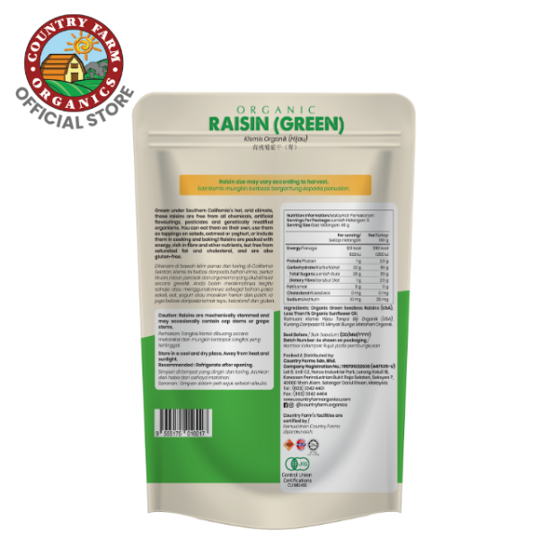 Country Farm Organics Certified Organic Seedless Raisins – Green (Pouch)