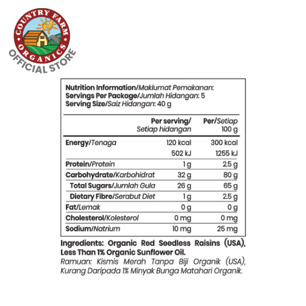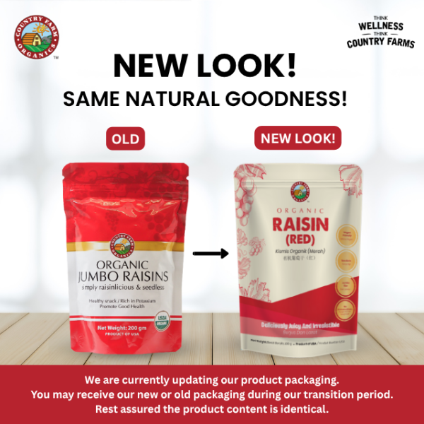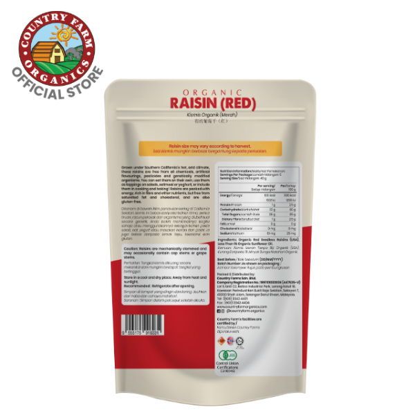 Country Farm Organics Certified Organic Seedless Raisins – Red (Pouch)
