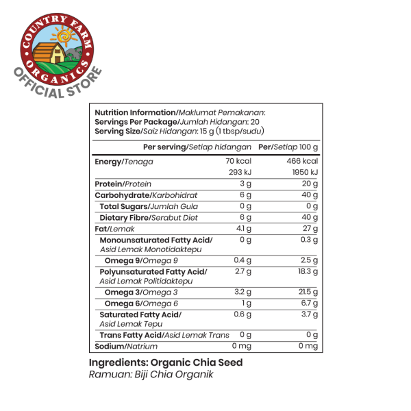 Experience the power of ancient wisdom with Country Farm Organics Certified Organic Chia Seeds! Cultivated for centuries for their remarkable health properties, these tiny nutritional powerhouses are packed with essential nutrients to fuel your well-being.